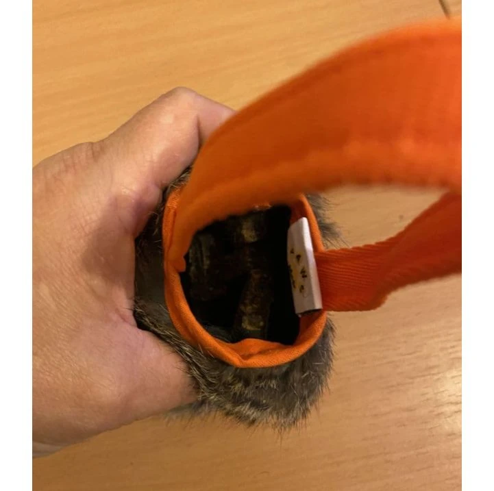 Rabbit, treats and the noise of the Velcro as a cue. How exciting !